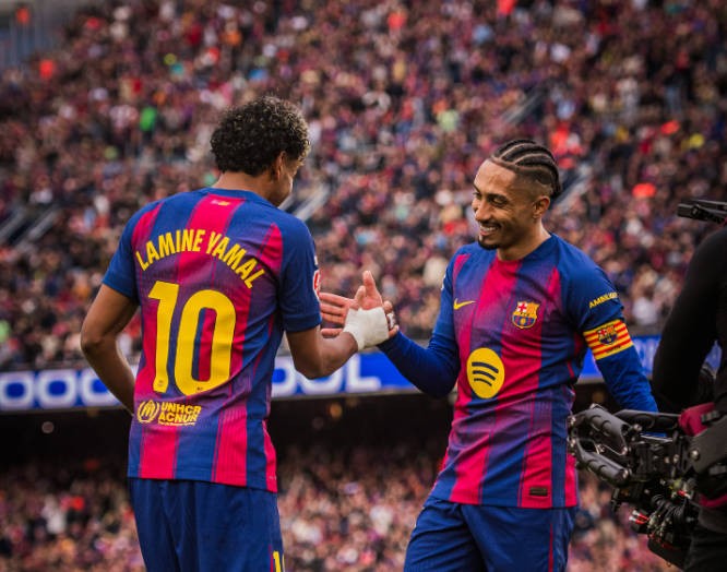 半场:巴萨2-0黄潜,亚马尔单刀破门+连过两人兜射建功